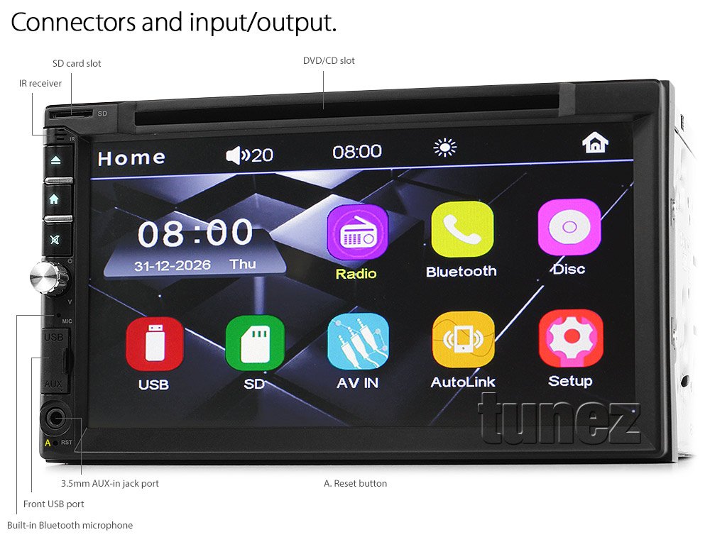 - * Note: Works with Tunez optional reversing camera; for details, view optional items at the bottom of this ad