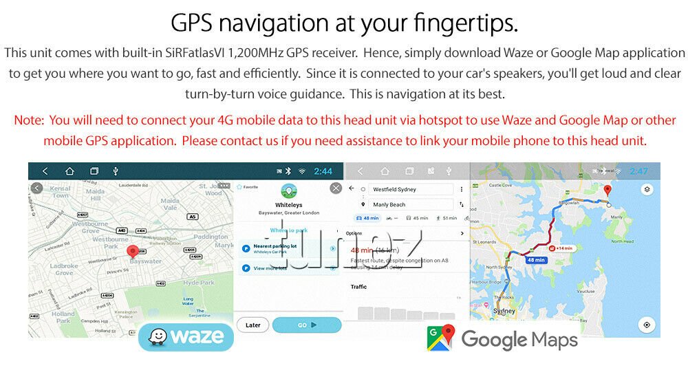 Note: You will need to connect your 4G mobile data to this head unit via hotspot to use Waze or Google Map other mobile GPS application. Please contact us if you need assistance to link your mobile phone to this head unit.